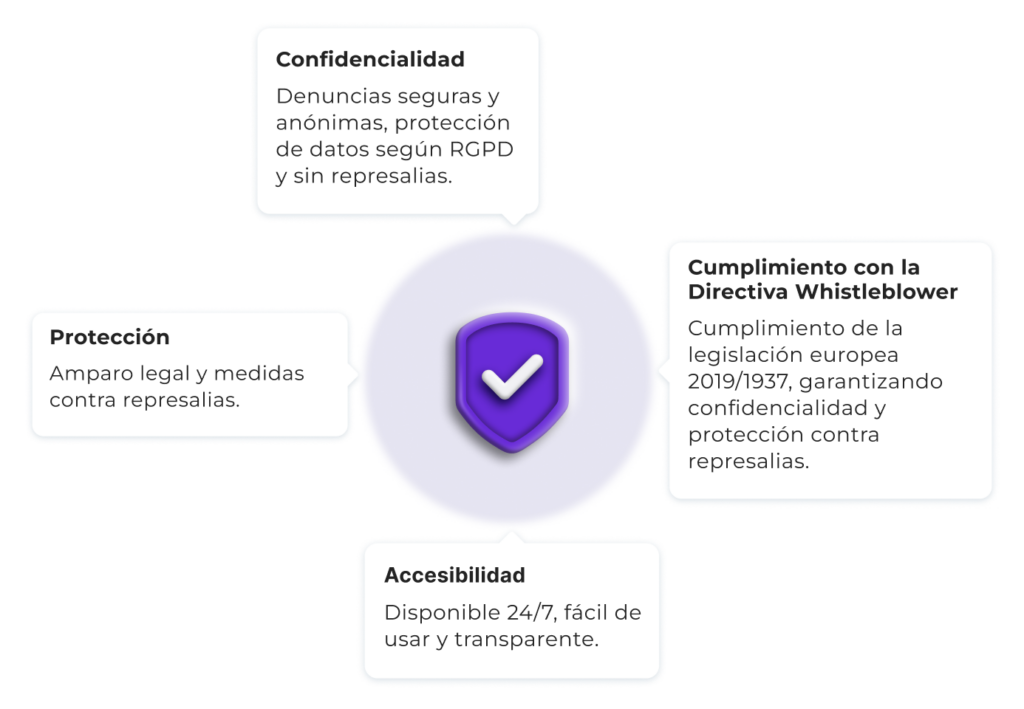 Nuestro sistema cumple con la Directiva Whistleblower, asegurando un marco legal adecuado.